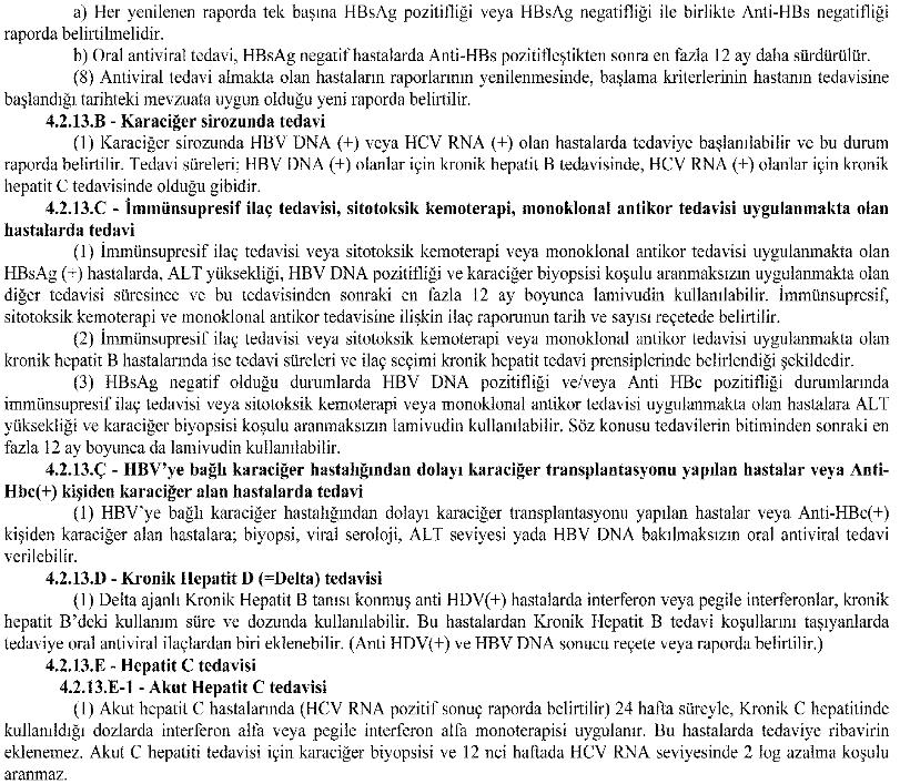 Sağlık Uygulama Tebliği'nde Hepatit Tedavisi (24 Mart 2013 Tarihli ve 28597 Sayılı Resmi Gazete)