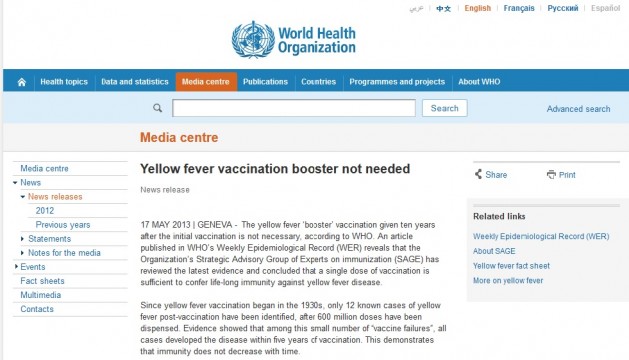 Sarı Ateş Aşısından Sonra Rapel Gerekmiyor