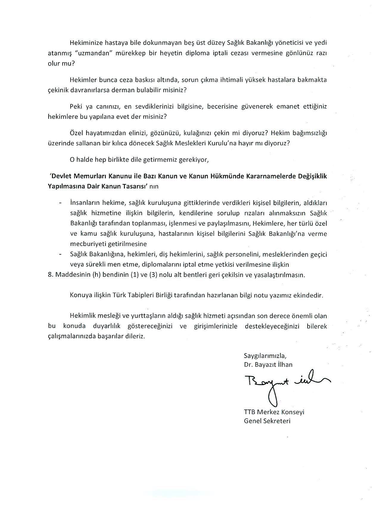 TTB'den: Hasta Mahremiyeti, Hekimlik Ahlakı Satılık Değil, Tasarıyı Geri Çekin