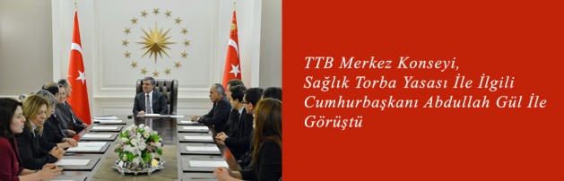 Türk Tabipleri Birliği Merkez Konseyi, TBMM’de 2 Ocak 2014 tarihinde kabul edilen Sağlık Torba Yasası ilgili olarak 9 Ocak 2014 Perşembe günü Cumhurbaşkanı Abdullah Gül ile görüştü.