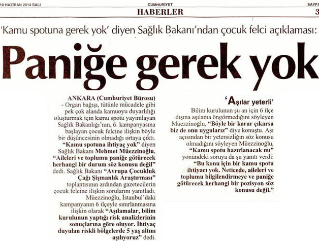 Sağlık Bakanı: Paniğe Gerek Yok