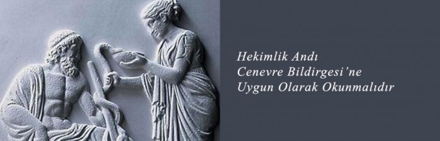 (Dünya Tabipleri Birliği Cenevre Bildirgesi, 2006) Hekimlik mesleğinin bir üyesi olarak kabul edildiğim şu anda; Yaşamımı insanlığın hizmetine adayacağıma, Mesleğimi bana öğretenlere, hak ettikleri saygıyı ve minnettarlığı göstereceğime, Mesleğimi vicdanımla ve onurumla uygulayacağıma, Önceliği her zaman hastamın sağlığına vereceğime, Hastamın bana açtığı sırları, yaşamını yitirdikten sonra bile gizli tutacağıma, Tıp mesleğinin yüce geleneklerini ve saygınlığını, bütün gücümle koruyacağıma, Meslektaşlarımı kardeşlerim sayacağıma, Yaş, hastalık ya da engellilik, inanç, etnik köken, cinsiyet, milliyet, politik düşünce, ırk, cinsel yönelim, toplumsal konum ya da başka herhangi bir özelliğin, görevimle hastam arasına girmesine izin vermeyeceğime, İnsan yaşamına en üst düzeyde saygı göstereceğime, Bana gözdağı veriliyor olsa bile, tıbbi bilgimi, insan haklarını ve birey özgürlüklerini çiğnemek için kullanmayacağıma, Kararlılıkla, özgürce ve onurum üstüne, Ant içerim.