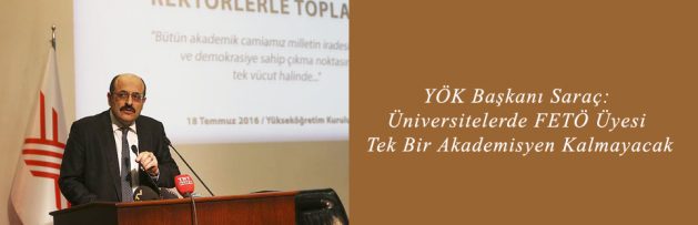 YÖK Başkanı Prof. Dr. Yekta Saraç, rektörlere, “Üniversitelerde FETÖ üyesi tek bir yönetici ve akademisyen kalmamalı. Akademi camiasını bu terör örgütünden tamamen temizleyin” çağrısında bulundu.
