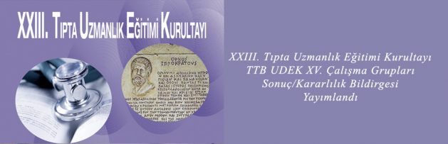 XXIII. Tıpta Uzmanlık Eğitimi Kurultayı TTB UDEK XV. Çalışma Grupları Sonuç/Kararlılık Bildirgesi Yayımlandı