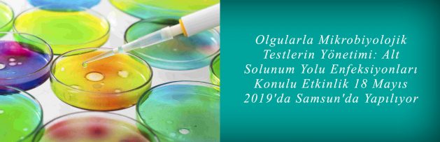 Derneğimiz KLİMİK‘in işbirliği ile Klinik Mikrobiyoloji Uzmanlık Derneği (KLİMUD)‘nin, Samsun Ondokuz Mayıs Üniversitesi, Tıp Fakültesi, Tıbbi Mikrobiyoloji Anabilim Dalı ev sahipliğinde Samsun’da düzenleyeceği “Olgularla Mikrobiyolojik Testlerin Yönetimi: Alt Solunum Yolu Enfeksiyonları” konulu Sürekli Tıp Eğitimi/Sürekli Mesleki Gelişim Etkinliği 18 Mayıs 2019 Cumartesi günü Ondokuz Mayıs Üniversitesi, Tıp Fakültesi, Pembe Salon‘da gerçekleştirilecektir.
