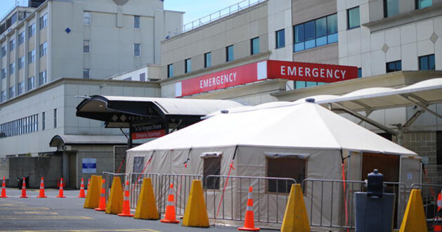 Middlemore Hastanesi acil servisine gelen hastaların triyajı için çadır kuruldu. Bugün hem COVID-19 vakalarında hem de hastaneye yatışlarda yeni rekor kırıldı.