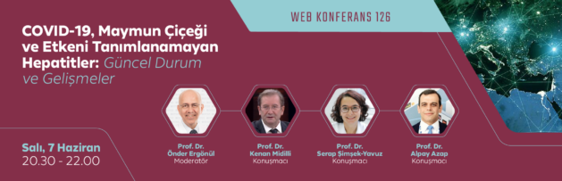 7 Haziran 2022 Salı günü, 20.30-22.00 saatleri arasında “COVID 19, Maymun Çiçeği ve Etkeni Tanımlanamayan Hepatitler: Güncel Durum ve Gelişmeler” konulu web konferans yapılacaktır.