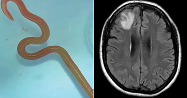 Avustralya’nın başkenti Canberra’da, bir kadının beyninden 8 cm uzunluğunda canlı solucan çıkarıldı. 64 yaşındaki kadın, 2021 yılında üç hafta süren karın ağrısı ve ishalin ardından sürekli kuru öksürük, ateş ve gece terlemeleri şikayetleriyle hastaneye yatırıldı. Şikayetlerine unutkanlık ve depresyon da eklenen kadına, MR taraması yapıldı. Canberra hastanesi infeksiyon hastalıkları doktoru Dr. Sanjaya Senanayake, normalde piton yılanlarında bulunan ve Latince adı “Ophidascaris robertsi” olan bir parazit olduğunu gördü.