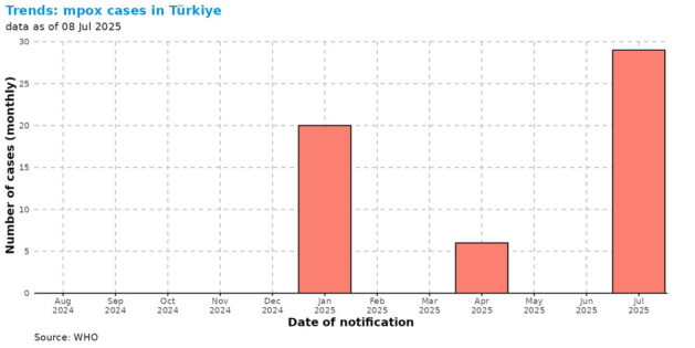Dünya Sağlık Örgütü (DSÖ) küresel M-çiçeği raporunda Türkiye’de son bir ayda görülen artışa ve 7 Ağustos’ta tanı konulan bir olguya vurgu yapıldı.