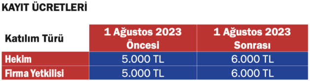- Kayıt ücretleri; oturumlarına katılım, kahve molaları, yaka kartı, bilimsel program, katılım sertifikası, stand ve toplantı alanlarına girişi kapsamaktadır.