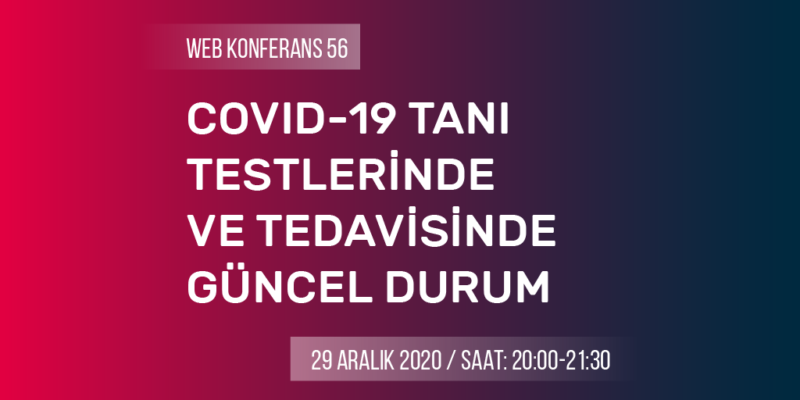 29 Aralık 2020 Salı günü, 20.00-21.30 saatleri arasında “COVID-19 Tanı Testlerinde ve Tedavisinde Güncel Durum” konulu web konferans yapılacaktır.