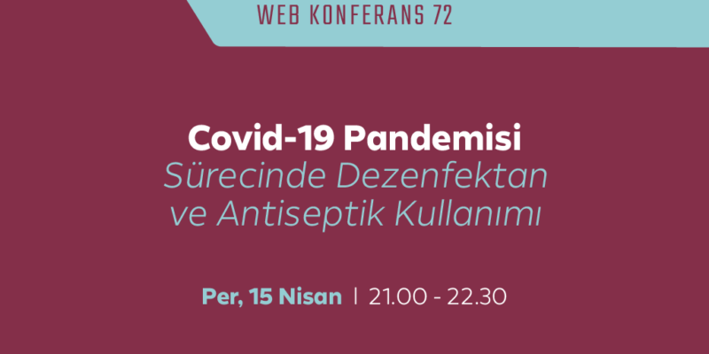 15 Nisan 2021 Perşembe günü, 21.00-22.30 saatleri arasında “COVID-19 Pandemisi Sürecinde Dezenfektan ve Antiseptik Kullanımı” konulu web konferans yapılacaktır.