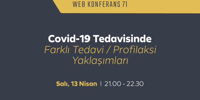 13 Nisan 2021 Salı günü, 21.00-22.30 saatleri arasında “COVID-19 Tedavisinde Farklı Tedavi/Profilaksi Yaklaşımları” konulu web konferans yapılacaktır.