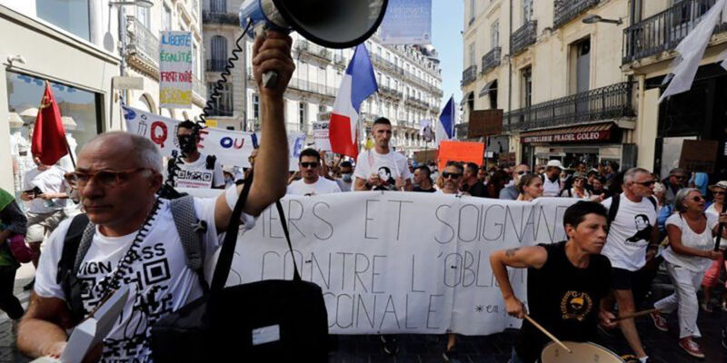 Fransa Cumhurbaşkanı Emmanuel Macron sağlık çalışanlarına en azından ilk doz aşılarını olmaları için önce 12 Temmuz’a kadar süre vermiş, daha sonra 15 Eylül’e kadar ya en az bir doz aşı olmaları ya da istifa etmeleri uyarısında bulunmuştu.